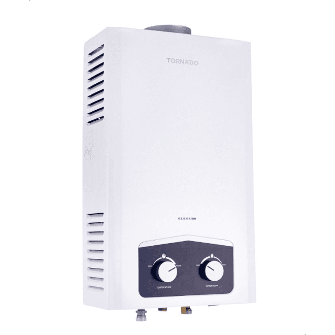 سخان تورنيدو غاز 10لتر ابيض ديجيتال مدخنة GHEC10BNEW